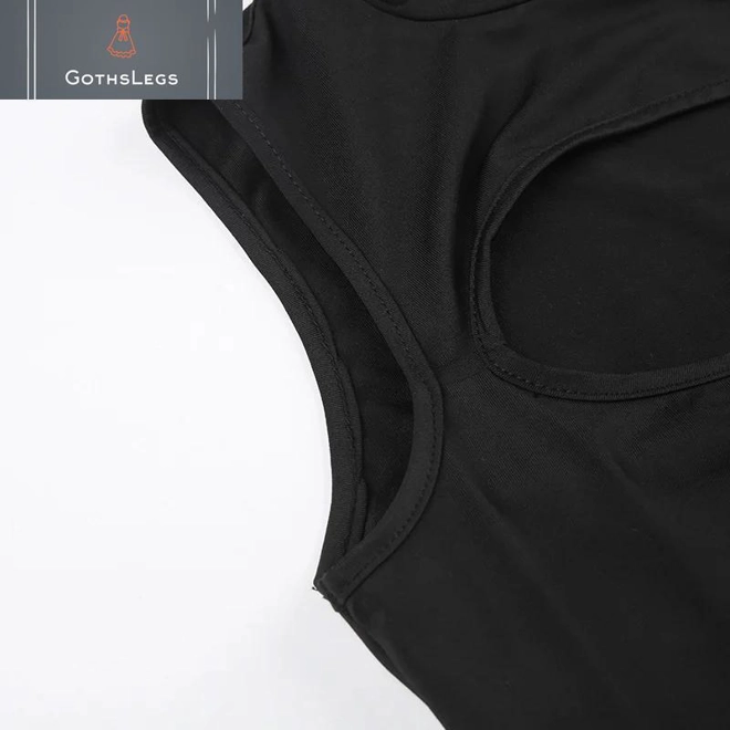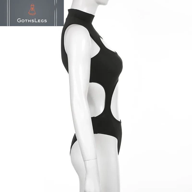 GothsLegs presents the Goth Dark Cut Out Sexy Techwear Black Bodysuit, a striking addition to any alternative wardrobe. This bodysuit features a sleek, solid black design that accentuates the figure while providing a comfortable fit. The sleeveless mock neck adds a touch of sophistication, making it perfect for layering or wearing on its own. The unique cut-out details offer a bold, edgy look that embodies the punk aesthetic, ideal for those who want to make a statement. Crafted from high-quality materials, this bodysuit is designed to be both durable and stylish, ensuring it can withstand the rigors of everyday wear. The skinny fit enhances your silhouette, making it a versatile piece that can be dressed up or down for various occasions. Pair it with high-waisted jeans for a casual outing or a skirt for a night out. The Goth Dark Cut Out Bodysuit is not just a piece of clothing; itâs a fashion statement that reflects individuality and confidence. Embrace your unique style with this essential addition to your collection, perfect for those who appreciate the fusion of comfort and edgy fashion.