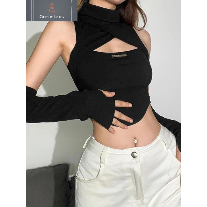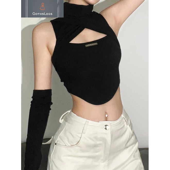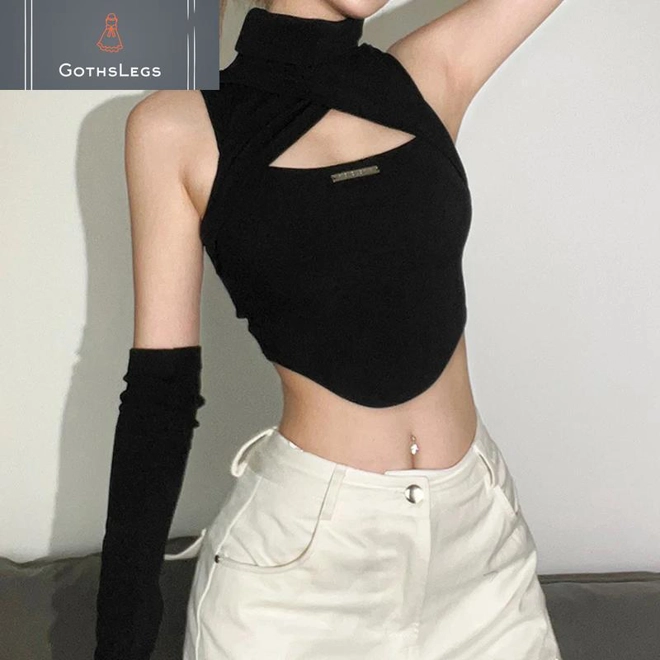 GothsLegs presents the Goth Dark Techwear Cyber Y2K Hollow Out Tank Top, a striking piece designed for those who embrace a bold and edgy style. This punk gothic turtleneck crop top features a unique hollow-out design that adds an alluring touch, making it perfect for streetwear enthusiasts. The sexy crop top is complemented by glove sleeves, enhancing its distinctive look while providing a comfortable fit. Crafted from high-quality materials, this tank top is not only stylish but also durable, ensuring it withstands the test of time. The skinny silhouette accentuates your figure, making it an ideal choice for layering or wearing on its own. Whether you're heading to a festival, a night out, or simply want to make a statement, this versatile piece can be paired with various bottoms, from high-waisted jeans to skirts. Available in multiple options, the Goth Dark Techwear Cyber Y2K Hollow Out Tank Top allows you to express your individuality and stand out from the crowd. Elevate your wardrobe with this essential piece that embodies the spirit of modern gothic fashion, making it a must-have for any trendsetter.