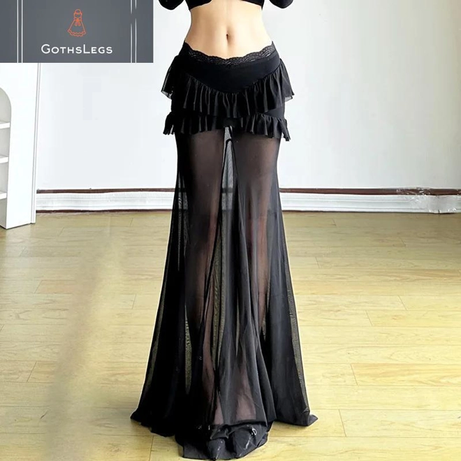 GothsLegs presents the Goth Dark Hotsweet Mesh Patchwork See Through Long Skirt, a stunning addition to any alternative wardrobe. This skirt features a unique blend of mesh and patchwork design, creating an eye-catching look that is both stylish and edgy. The see-through fabric adds a touch of allure, making it perfect for layering over your favorite outfits. With its Y2K-inspired ruffles and package hip silhouette, this skirt is designed to flatter a variety of body types while providing comfort and movement. Ideal for gothic streetwear enthusiasts, this long skirt can be paired with combat boots or platform shoes for a complete look. The versatile design allows for easy styling, whether you're dressing up for a night out or keeping it casual for a day at the mall. Available in multiple options, this skirt is a must-have for those who love to express their individuality through fashion. Embrace your unique style with the Goth Dark Hotsweet Mesh Patchwork See Through Long Skirt from GothsLegs, and make a bold statement wherever you go.