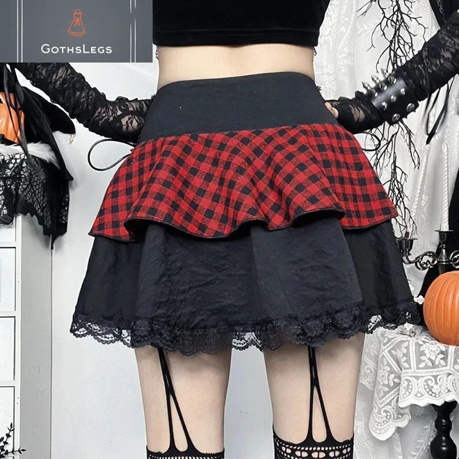 GothsLegs presents the Goth Dark Plaid Patchwork Lace Sweet A-line Skirt, a stunning piece that embodies the essence of 90s chic fashion. This mini skirt features a unique patchwork design that combines dark plaid patterns with delicate lace accents, creating a striking visual appeal. The A-line silhouette flatters various body types, making it a versatile addition to any wardrobe. Perfect for festive occasions, this skirt can be paired with a variety of tops, from casual tees to elegant blouses, allowing for endless styling possibilities. The bandage techwear design ensures a comfortable fit while maintaining a stylish edge. With a convenient zip closure, it offers ease of wear, making it ideal for both day and night outings. The Goth Dark Plaid Patchwork Lace Sweet A-line Skirt is not just a piece of clothing; itâs a statement of individuality and style. Whether you're attending a holiday gathering or a casual day out, this skirt will elevate your look and express your unique fashion sense. Embrace the gothic aesthetic with this exquisite piece that combines comfort, style, and a touch of nostalgia, making it a must-have for any fashion-forward individual.